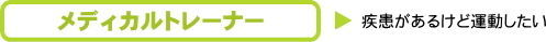 理学療法士や柔道整復師、鍼灸あん摩マッサージなどの医療系の資格を有する医学知識と技術に長けたトレーナーが指導します。特に疾患をお持ちの方、あるいは今後疾患を予防したい方などに対するコンディショニング指導を得意としています。
