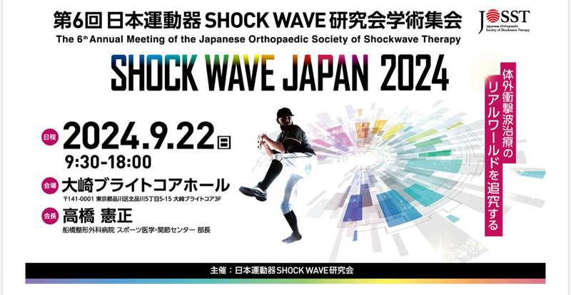 2024年9月22日に東京都品川区にある大崎ブライトコアホールで開催された「第6回日本運動器SHOCK WAVE研究会学術集会」に、長野整形外科クリニック理学療法士の小尾尚貴と松岡佑紀、都立大整形外科クリニック理学療法士の工藤大地が参加致しました。