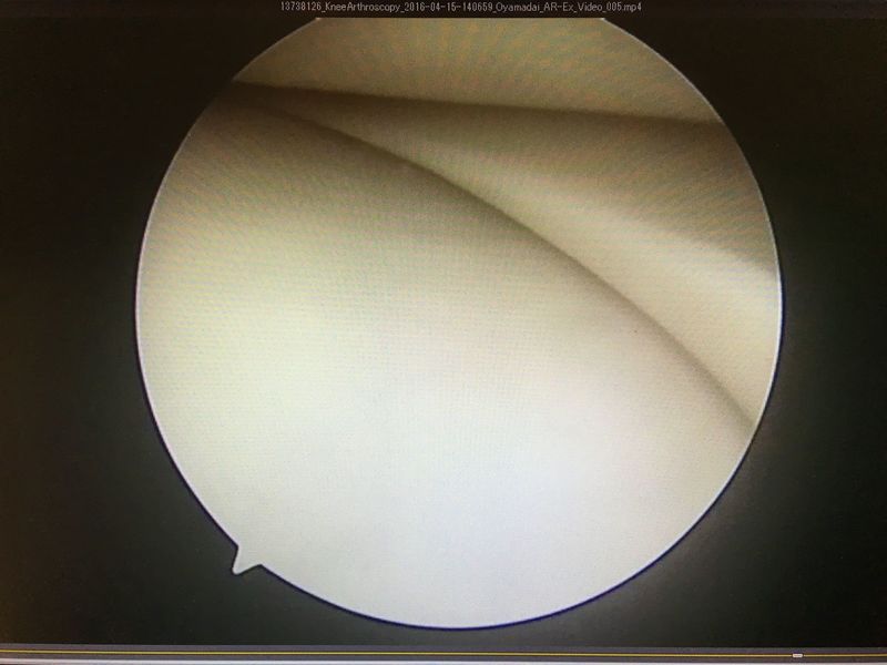 現病歴:2010年頃に反復横跳びを行った際に右膝を捻り他院で右膝ACL損傷と診断をうけた。その後2016年1月に仕事中に自転車運転中に路面が凍っていて転倒し右膝を強打した。都立大整形外科クリニック林医師を受診し、MRI検査の結果、右膝ACL損傷と診断をうける。ヨガで胡坐をとった際の痛みと腫れが出現していた。運動時の炎症と膝の不安定感がなくならないことからACL再建術を施行した。