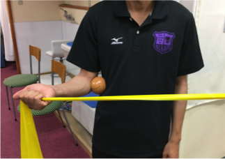 術後6週間は前方の肩関節唇を縫合しているため肩関節の外旋角度が出すぎないように注意しながらリハビリテーションを行いました。術前より肩甲骨を固定する力・体幹を支える力が弱かったため、ご自宅とクリニックとでトレーニングを続けました。その結果、術前よりも強い体を作ることができ、術後5ヶ月頃より部分練習再開、術後8ヶ月頃より競技復帰されました。