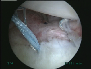 | 前方関節唇損傷 | 損傷部位を縫合中 | 縫合終了 |