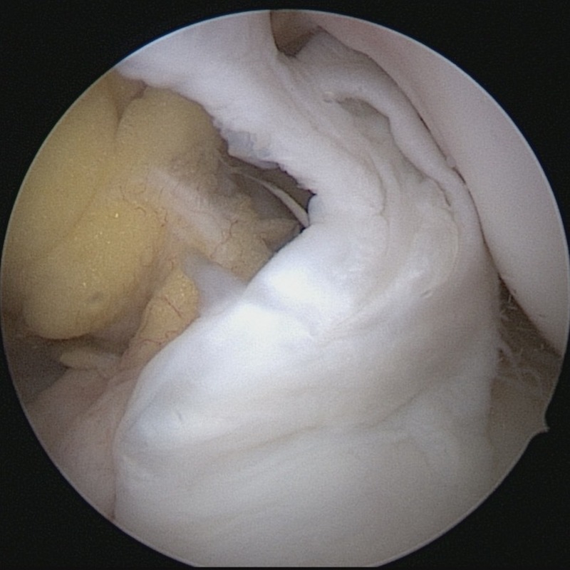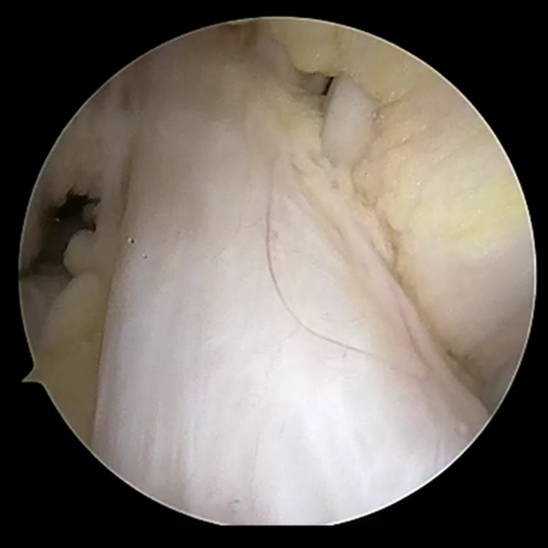 関節鏡では膝関節内に太くしっかりした靭帯としてみることができます。前十字靭帯が損傷してしまうと緊張がなくなり垂れ下がるようになることもあります。