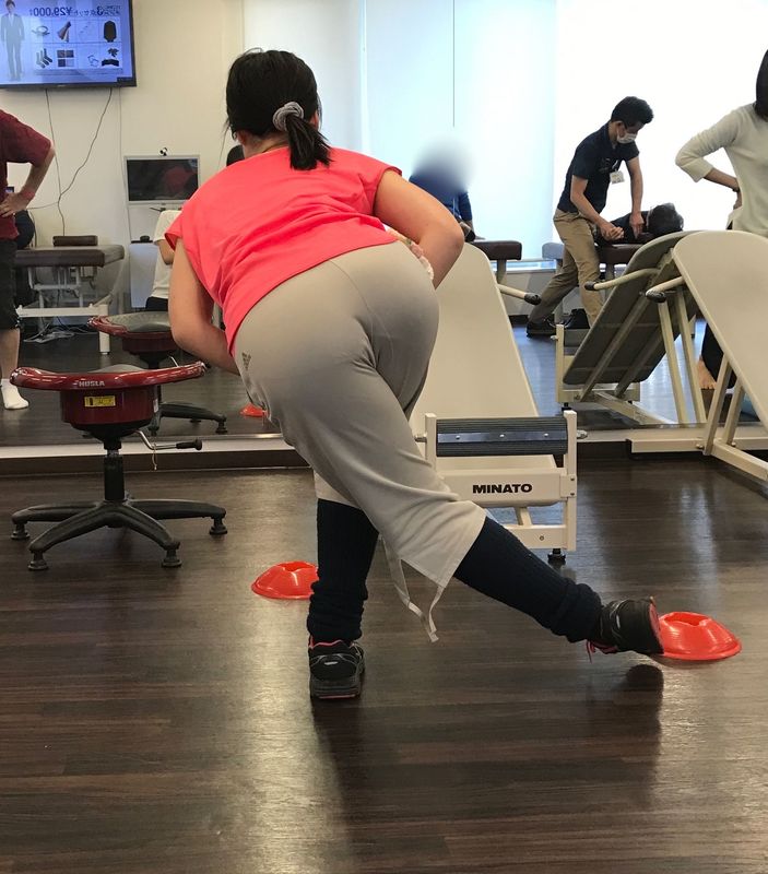 | 術後4ヵ月頃よりランジ動作や横方向へのリーチ運動を積極的に行いました | バレエのパッセの動作を模した内側ハムストリングスのトレーニングを重点的に行いました |