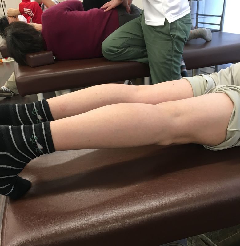 | 術創部も含め膝蓋骨遠位の滑走性の改善をはかり、早期の最終伸展獲得を目指しました | 下腿外旋アライメントをみとめたため、術後4週より下腿内旋筋の収縮を積極的に取り入れました |