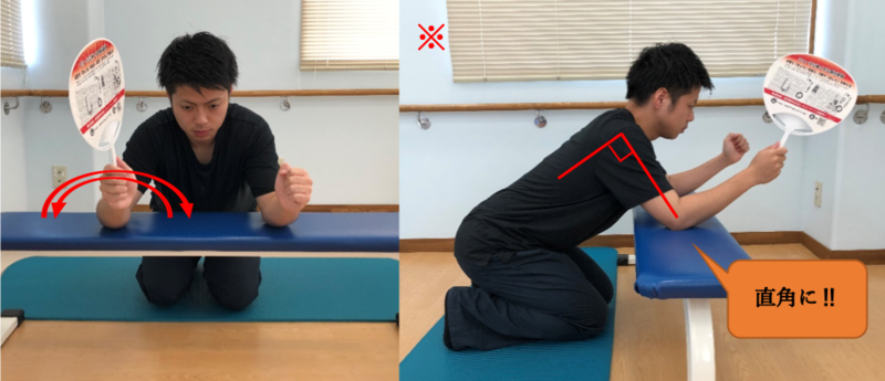 ②動かすときは肘を支点にし、肘の位置は動かさないようにしましょう。