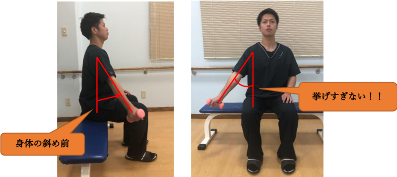 ※注意 ①持ち上げたときに、身体が反対側に倒れたり、肩が持ち上がらないようにしましょう。
