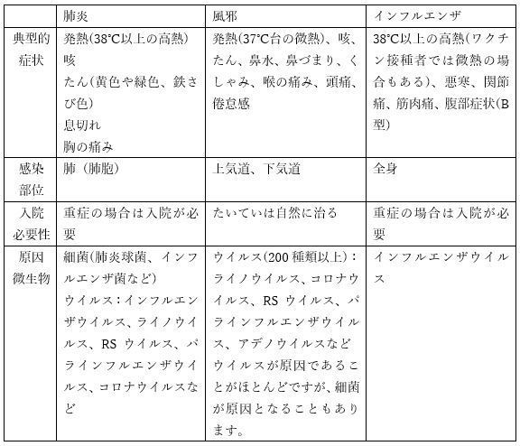 肺炎と風邪、インフルエンザの違い
