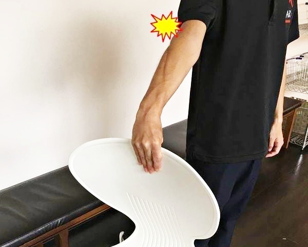 持ち上げる様に、椅子を手であげた時に肘の外側に痛みが出るか?