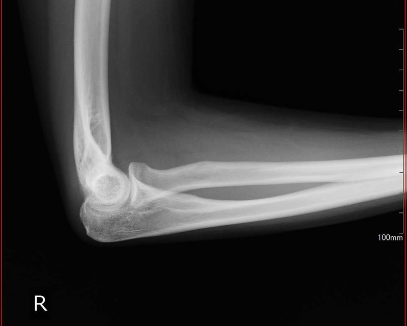 テニス肘は腱の炎症のため、レントゲン検査を行っても通常、骨には異常が見られることはありません。