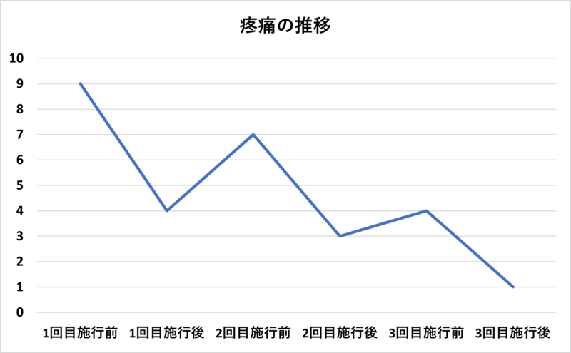 体外衝撃波は3回施行し、漸減的に疼痛が軽減していきました。