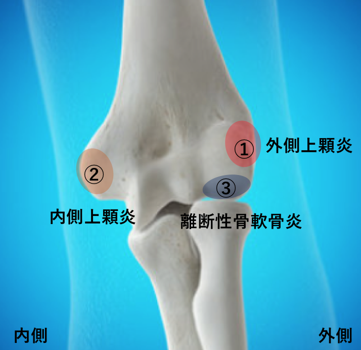 肘関節で体外衝撃波治療が効果のある疾患は代表的なのは外側上顆炎・内側上顆炎・離断性骨軟骨炎です。