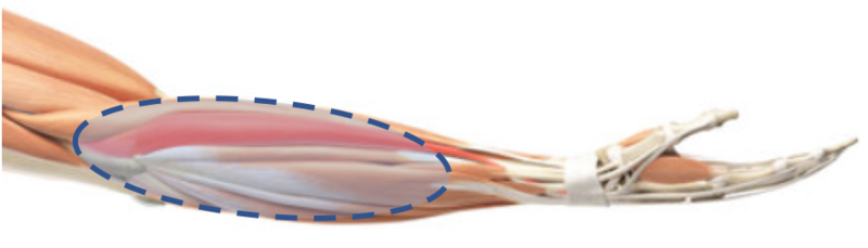 外側上顆炎は点線で囲まれている筋肉に過剰な負荷がかかると痛みが出現します。