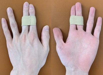 受傷直後から痛みが取れるまではバディテーピングを行います。