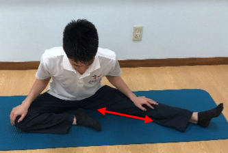 ※このとき骨盤が後ろに倒れて背中が丸まる方は、クッションの上に座って行いましょう!!