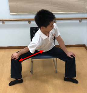 ③片方の膝を手で外に押し、さらに脚が開くようにする