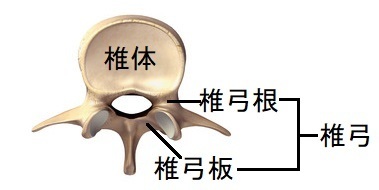 腰椎は5つの椎体から構成され、その椎体の後方は椎弓で連結しています。