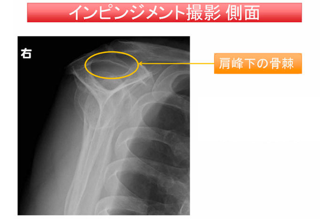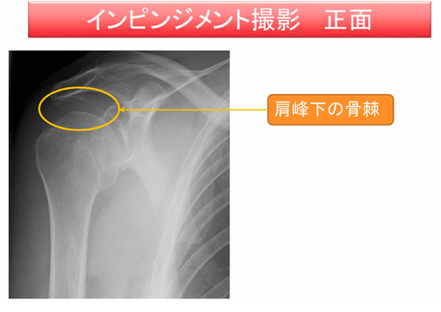単純レントゲン画像は、肩峰下骨棘サイズを計測しています。また、腱板へのダメージ、肩峰下滑液包の滑走面の異常を超音波画像診断装置で評価します。