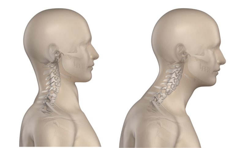 首が前にでた状態がつづくと簡単にストレートネックが完成してしまいます。