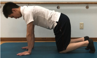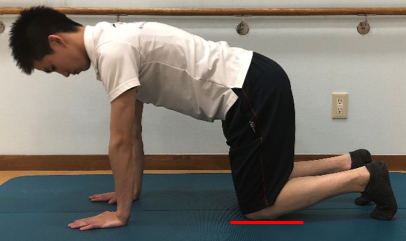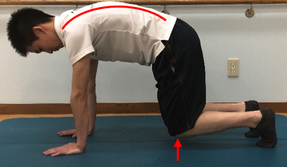 ①四つ這いになり、手で床を軽く押すようにして背中を張る