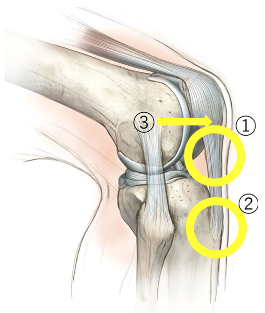 膝蓋腱はジャンプ動作やダッシュなどで膝を多く使うと過度に引き伸ばされるストレスがかかります。