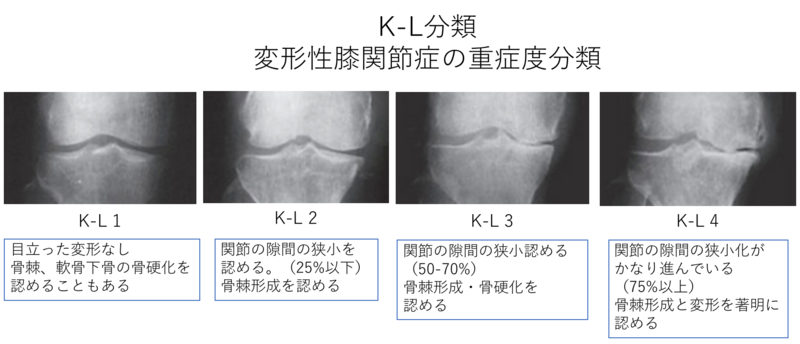 変形性膝関節症の重症度はレントゲンで分類できます。