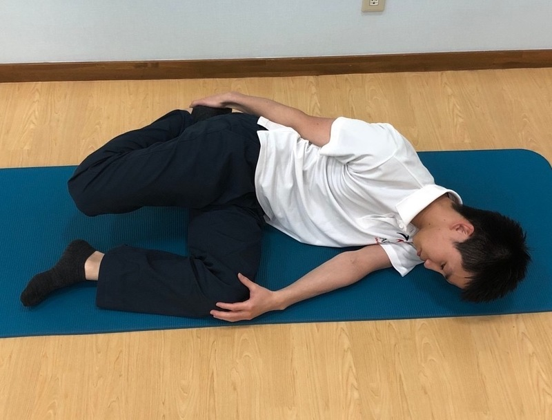 痛みが引けてきたら、簡単なストレッチ・トレーニングを行います。