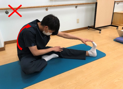 ※注意点として、膝がしっかり伸びている状態で行いましょう。