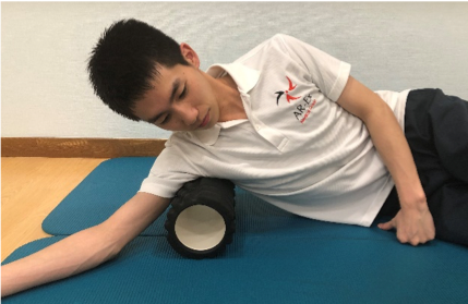 ②グリッド または タオルを丸めたポールをわきの下に置く