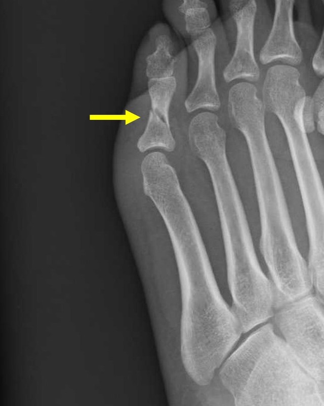 過度のスポーツなどによる集中した力が加わることで、小さなひびがたくさん発生したために起こる骨折です。