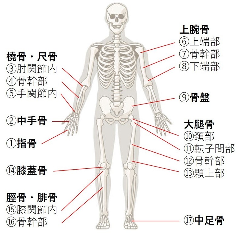 | 大腿骨 | ⑩頚部 | 12週 | 24週 | 60週 |