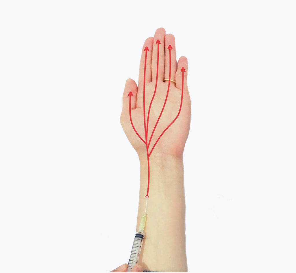 - 痛みが近い動脈に、注射針または点滴用チューブを挿入します。