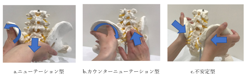 b.カウンターニューテーション型(仙骨をうなずき方向に誘導にして痛みが軽減する)