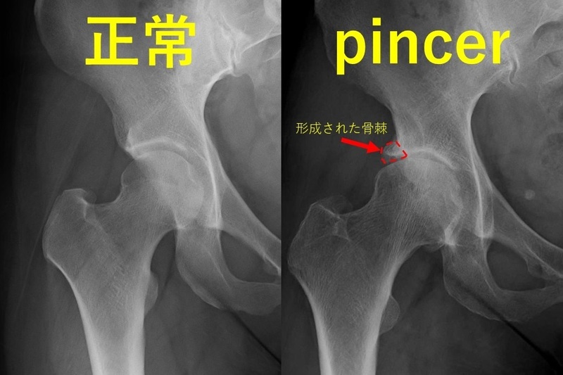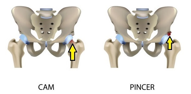 1. CAM(カム)型: 太ももの骨(大腿骨頭)の根元が膨らんでおり、関節を曲げた時にその膨らみが骨盤の縁に突き当たるタイプ。