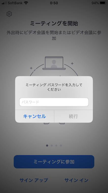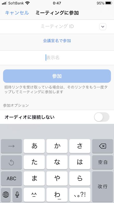 ”ミーティングに参加”をタップ(もしくはクリック)します。