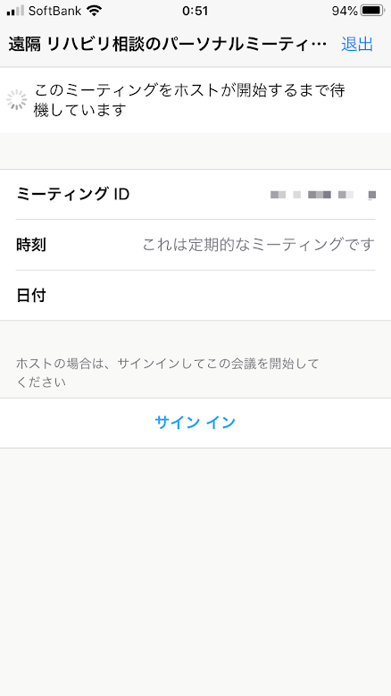次に遠隔リハビリ相談専用のLINEから送られた指定のミーティングIDを入力します。