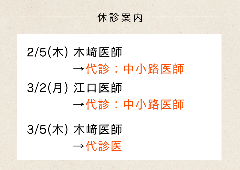 2月,3月 休診のお知らせ