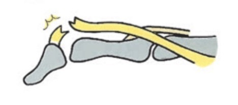 伸筋腱が断裂すると指を伸ばすことが出来なくなり見た目(外観)が変形します。