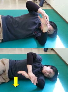 1.肘を立てて横に寝ます