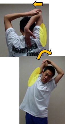 1.頭の後ろで片肘をつかみます