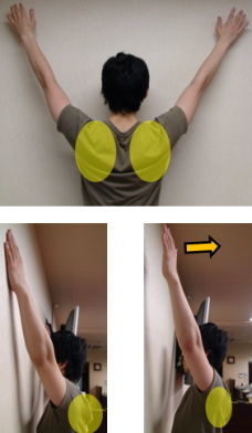 1.壁に近づき両腕をYの字に上げる