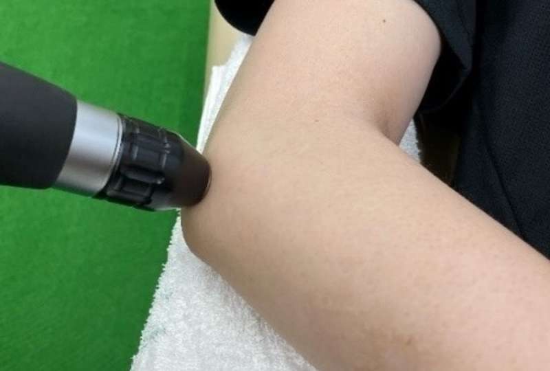 2021年4月から肘の外側に痛みを感じ、徐々に悪化していきました。同年11月に当クリニックを受診し、外側上顆炎と診断後、リハビリを開始しました。1ヶ月弱リハビリを行い、痛みは軽減しましたが、発症から経過が長期であるため、体外衝撃波治療を開始しました。理学所見