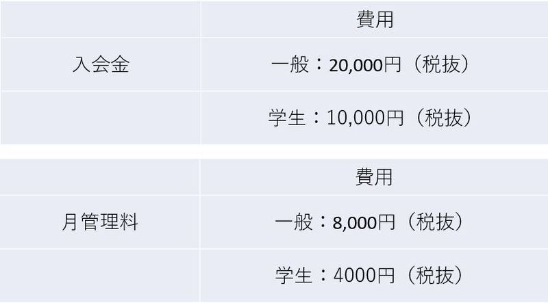 ● 入会金20,000円(税抜)、月管理料1ヶ月分8,000円(税抜)