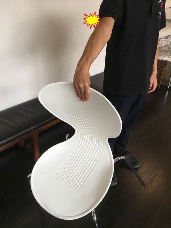 ③Chair test 肘を伸ばした状態で椅子を持ち上げて痛いかどうか検査します。