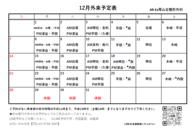 12月外来診療カレンダー