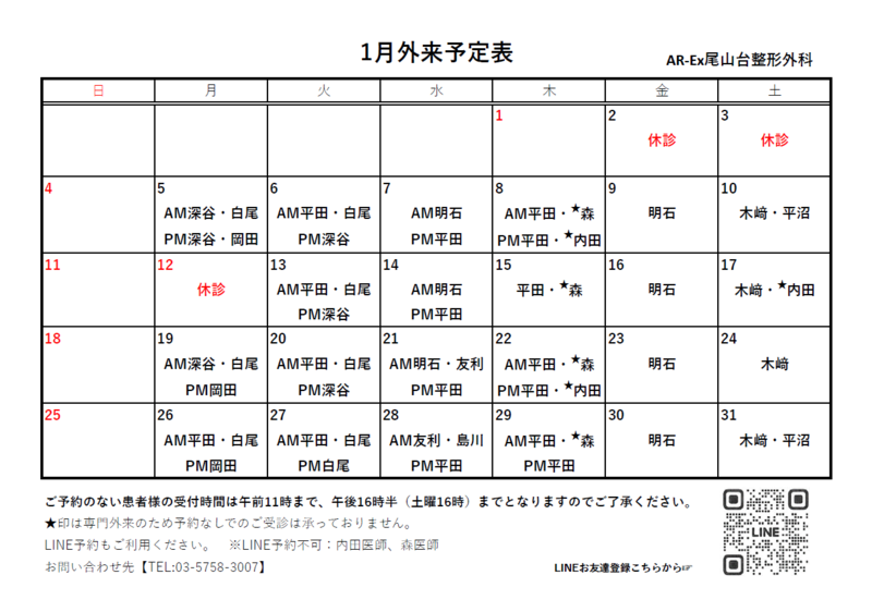 外来担当医表