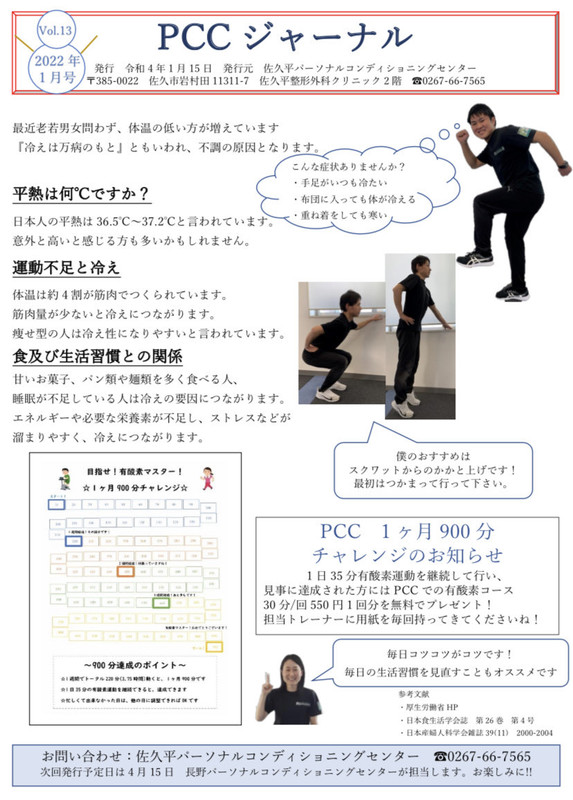 3ヶ月に1回、パーソナルコンディショニングセンターが発行しているジャーナルを掲載しています。
