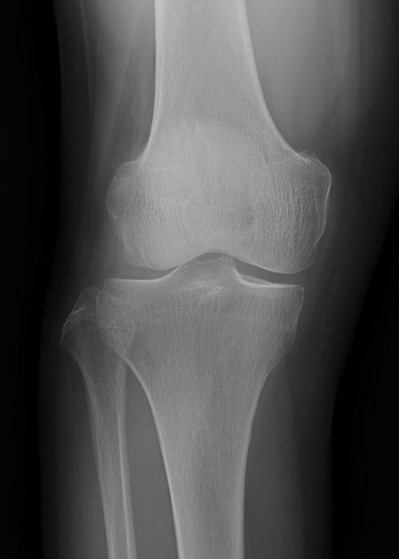 他院でレントゲンの撮影を行い骨には異常がないと診断され、湿布の処方とヒアルロン酸の治療を5回施行するも効果がなく当院に来院した。XP画像