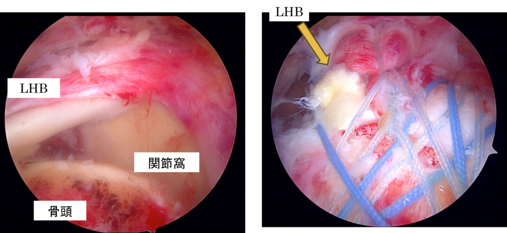 力こぶの筋肉の腱(上腕二頭筋長頭腱)を切り離さずに活用し、断裂した部分の「屋根」として補強する鏡視下上方関節包補強術(ASCAL)を併用します。