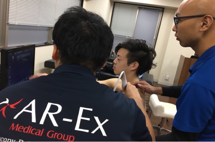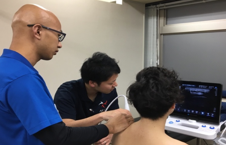 上の図のように実際に肩を動かしながら、超音波を使って肩の筋肉の動きを観察しました