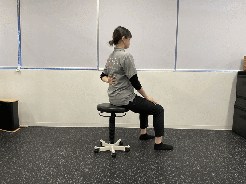 1:立位もしくは座位で片手を結帯動作のように腰にまわす